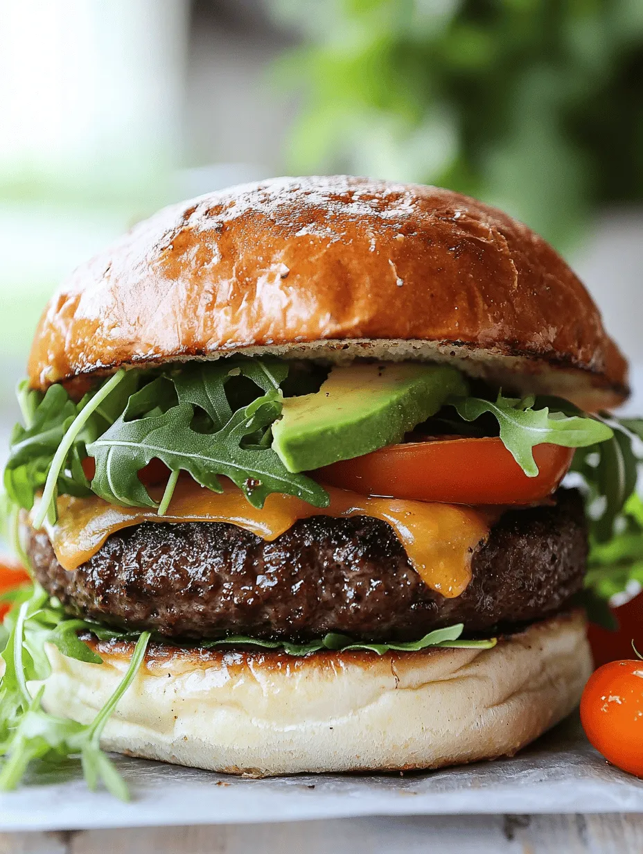 The role of a juicy patty cannot be overstated; it is the heart of the burger and must be crafted with care to ensure it remains moist and flavorful throughout the grilling process. For those who appreciate the art of cooking, the balance of flavors and textures is crucial. This burger combines the rich, savory taste of the beef patty with the creamy goodness of avocado, the peppery bite of arugula, and the sweetness of ripe cherry tomatoes. To top it all off, a slice of sharp cheddar cheese adds a delightful tang that elevates this burger to new heights.