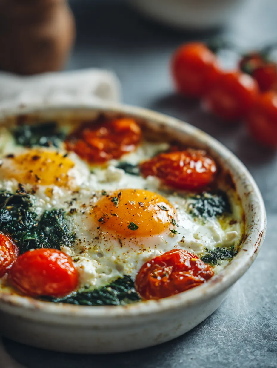 Baked Feta Eggs with Spinach and Tomatoes is a delightful dish that marries the rich, creamy flavors of feta cheese with the wholesome goodness of eggs, spinach, and vibrant cherry tomatoes. This recipe draws inspiration from Mediterranean cuisine, known for its use of fresh, high-quality ingredients that promote health and satisfaction. It has gained popularity in recent years, particularly among those seeking easy, flavorful meals that can be prepared in a single dish.