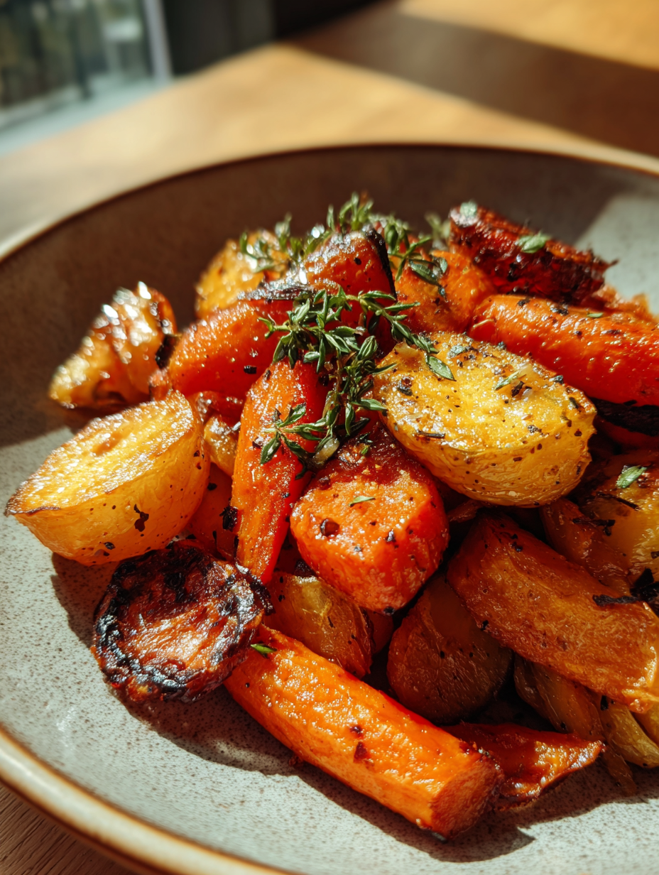 The first time I made Caramelized Honey-Glazed Roasted Vegetables, I was bustling around my kitchen, the sounds of laughter and clinking glasses spilling in from the dining room where friends gathered for a cozy dinner. The air was thick with the fragrant aromas of sautéing garlic and freshly roasted vegetables. I remember how the warm, earthy scent of carrots and zucchini mingled with the sweet notes of honey, creating a delightful symphony that danced around my senses. As the vegetables roasted to a beautiful golden brown, I could hardly contain my excitement, knowing that this dish would soon steal the show.