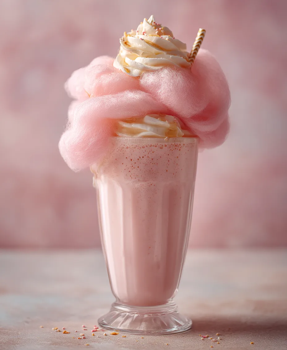 Blend on high speed until the mixture is smooth and creamy, ensuring the cotton candy is fully incorporated.