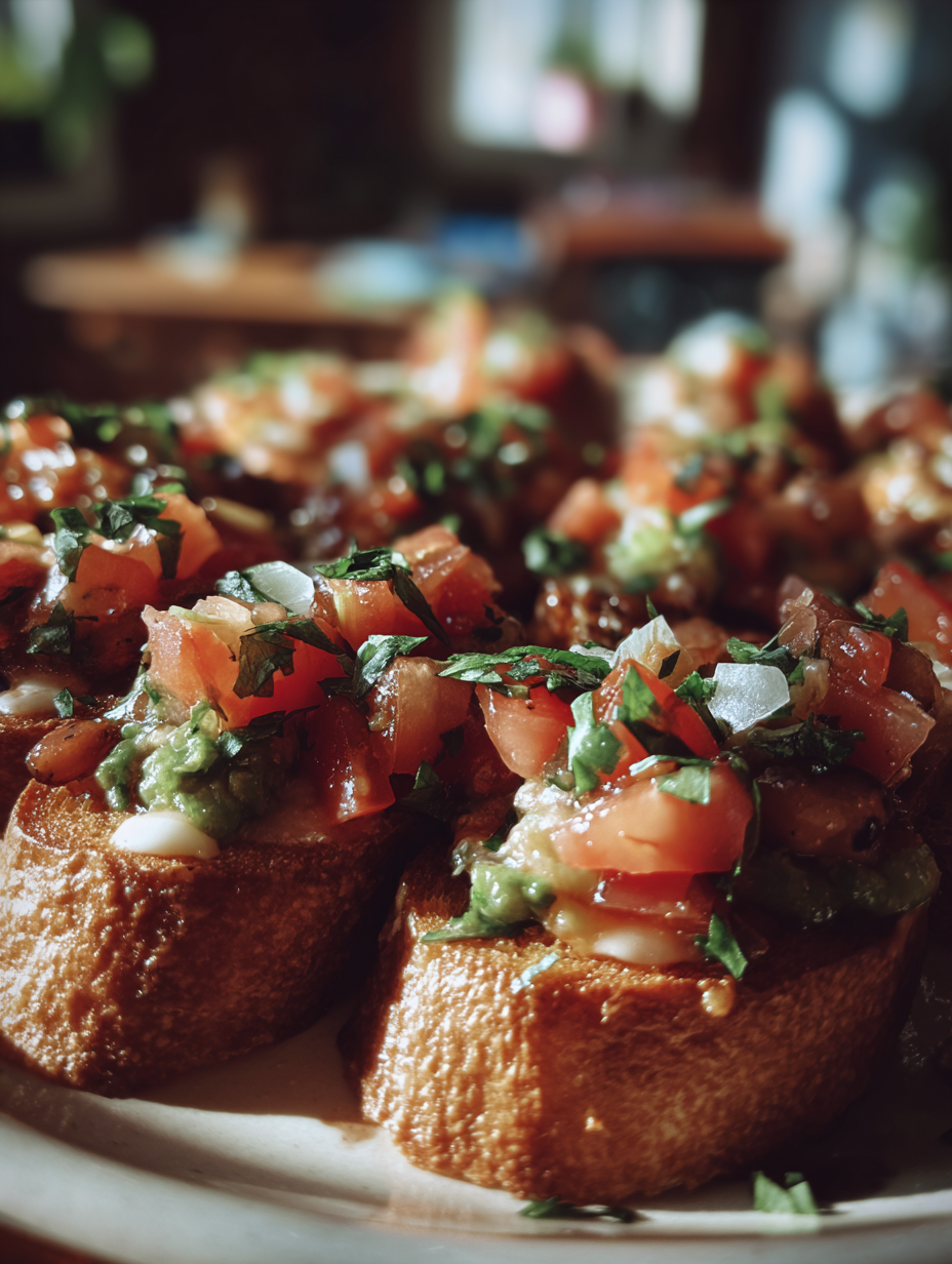 Picture this: golden, crispy slices of baguette, their edges perfectly toasted, providing a satisfying crunch with each bite. You can see the vibrant colors of black beans, bright corn, and ruby-red cherry tomatoes mingling together in a bowl, their textures contrasting beautifully. The fresh cilantro adds a pop of green, while a squeeze of lime juice gives it a zesty finish that dances on your palate. As I watched my friends scoop up generous spoonfuls and smile with delight, I knew I had struck culinary gold.