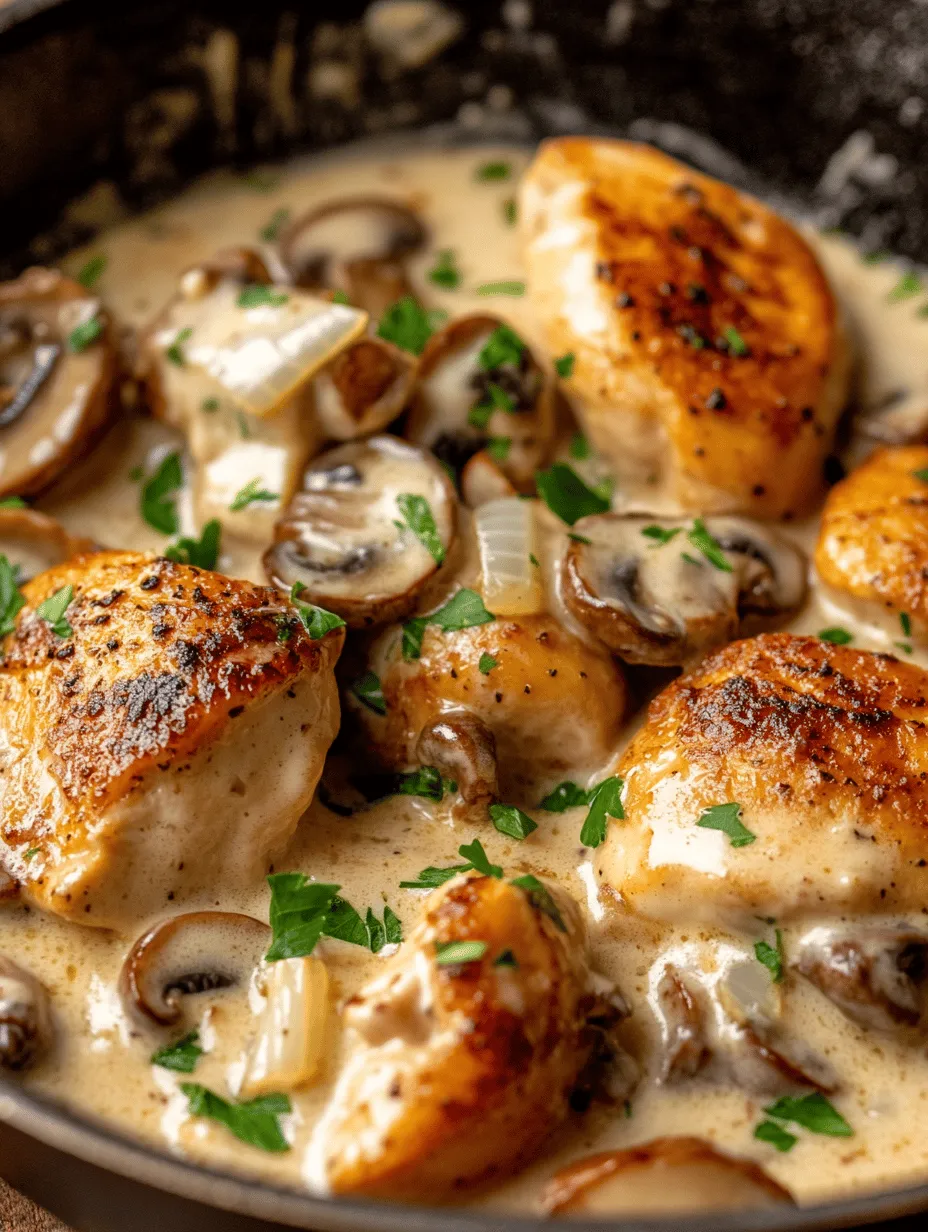 As the chicken heats through, the rich aroma will envelop your kitchen, making it hard to resist diving in. The combination of tender chicken, earthy mushrooms, and creamy sauce creates a dish that is not only satisfying but also visually stunning, perfect for impressing guests or treating yourself to a delicious home-cooked meal.