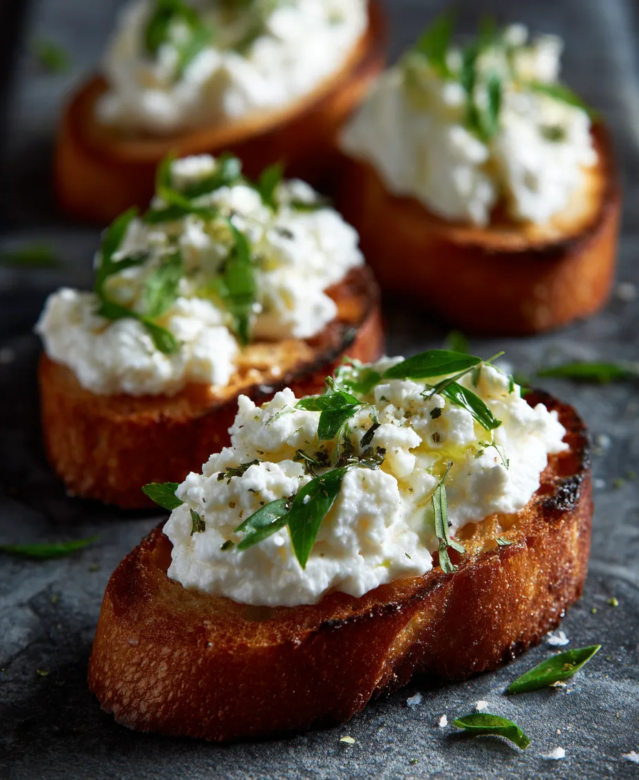 Delicious Creamy Ricotta Crostini with Honey & Herbs 🍞🍯 ready to serve