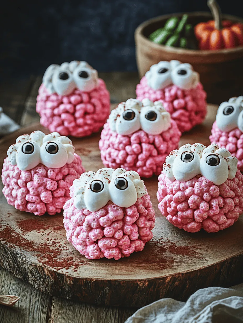 While the basic recipe is already a treat for the eyes, you can take it a step further with optional decorative ingredients. Cocoa powder can be sprinkled on top to add a rich, dark contrast that makes the treats resemble real brains even more closely. Additionally, edible eyes can be placed on top of the molded treats, giving your marshmallow creations a fun and quirky personality. These small touches elevate the overall presentation, making your Marshmallow Rice Krispies Brains not just a dessert but a conversation starter at any gathering.