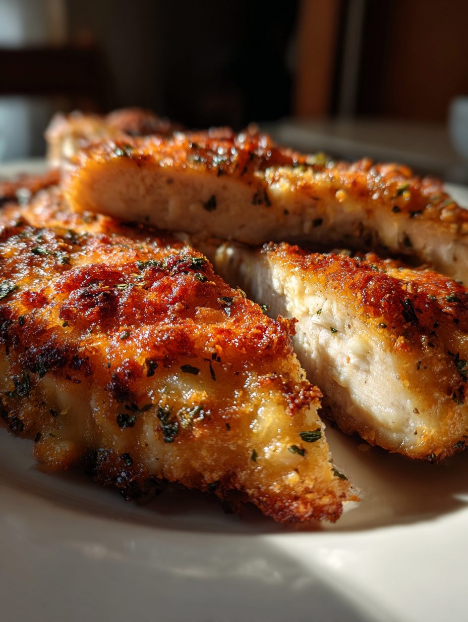 The chicken turned a beautiful shade of golden brown, its crust glistening with flecks of fresh herbs. The moment I plated the cutlets, the vibrant colors of the dish dazzled against the white dinnerware, a feast for both the eyes and the palate. I remember the first bite, the satisfying crunch as my fork pierced through the crispy exterior, revealing the juicy, tender chicken within. Each mouthful was a delightful dance of flavors—the salty richness of Parmesan cheese, the earthiness of thyme, and the subtle warmth of garlic powder.