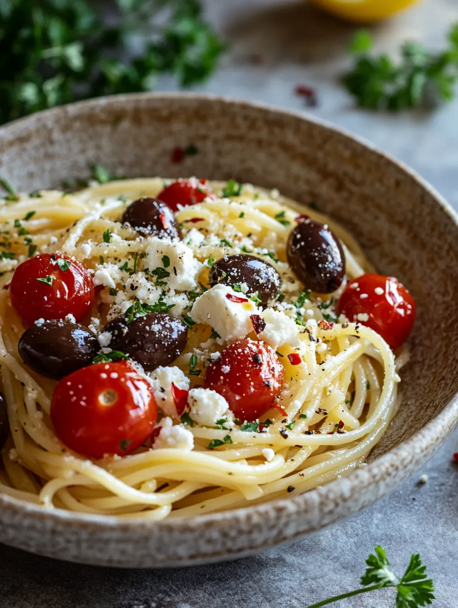 Kalamata olives are a cornerstone of Greek cuisine, renowned for their deep, rich flavor and unique texture. Adding these olives to your Greek spaghetti not only enhances the dish’s overall taste but also introduces a delightful brininess that balances the sweetness of tomatoes and the zest of lemon. Their boldness complements the other flavors, creating a harmonious blend that is characteristic of Mediterranean cooking.