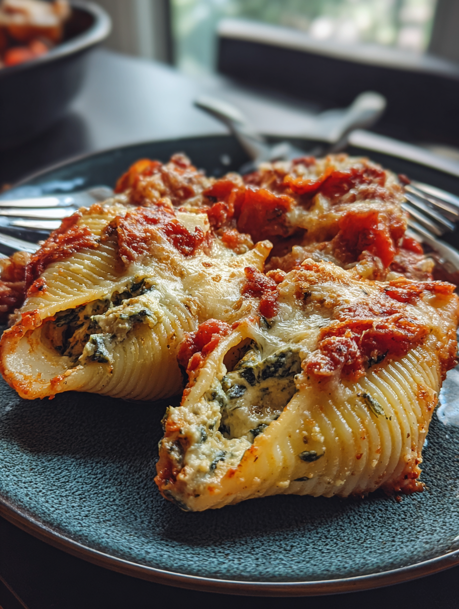 5. Kid-Friendly Version: Cheese and Pepperoni Stuffed Shells – Instead of spinach, fill the shells with a mixture of ricotta, mozzarella, and small pieces of pepperoni. Kids will love the familiar flavors, and you can serve it with a side of marinara for dipping!