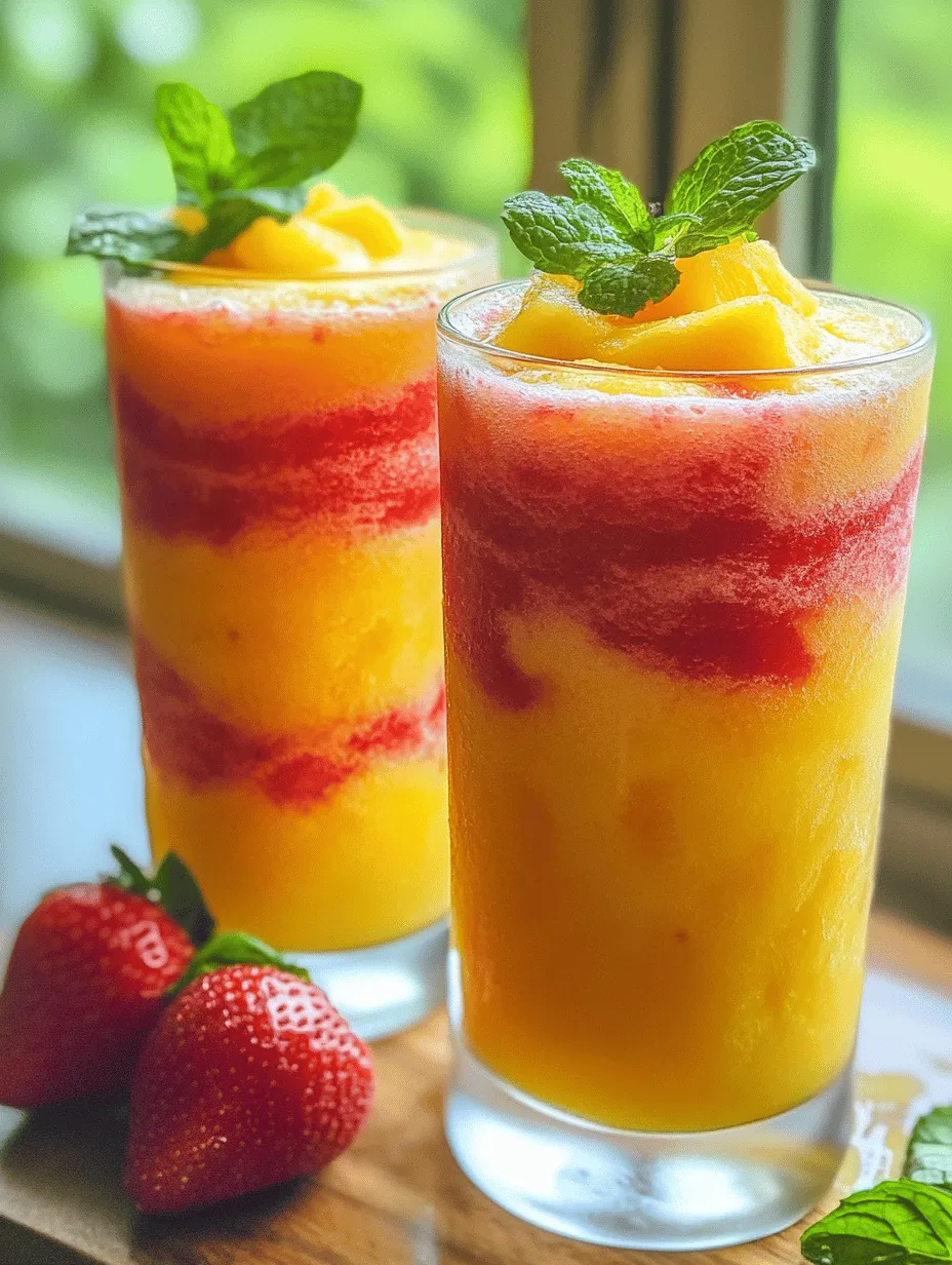 For an even more stunning presentation, you might consider using layering techniques. Try pouring the slushes in alternating layers—start with a scoop of pineapple, followed by a scoop of strawberry, and repeat until the glass is full. The key is to pour slowly and carefully, allowing the colors to sit beautifully on top of each other. Choosing the right glassware can also enhance the visual appeal. Clear glasses, such as mason jars or tall smoothie glasses, will showcase the vibrant colors of your slushies, making them even more enticing.