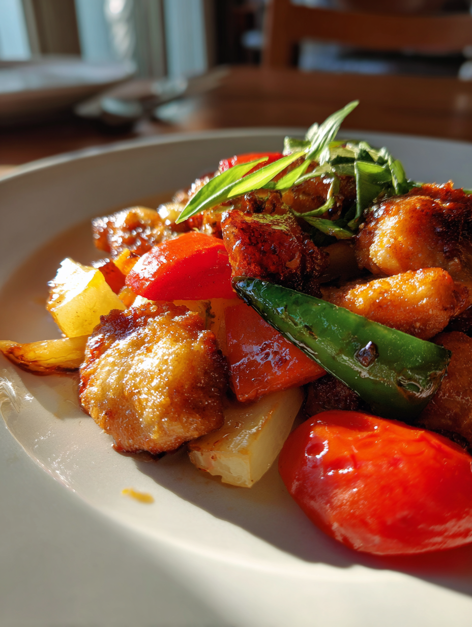As you step into your kitchen, the scent of roasting chicken mingles with the earthy aroma of fresh rosemary, creating an inviting atmosphere that feels like home. This is the memory that springs to mind whenever you make Sheet Pan Chicken with Rainbow Vegetables. It takes you back to a sun-drenched Sunday afternoon, where laughter filled the air as family gathered around the table. You remember the vibrant colors of the sliced vegetablesâcrimson red bell peppers, sunny yellow bell peppers, and earthy green zucchiniâall waiting to be tossed together in a dance of flavor.