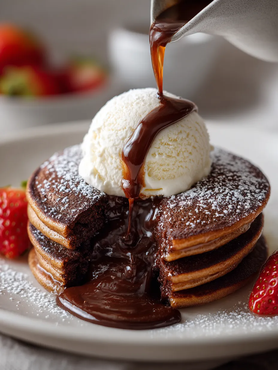 When it comes to plating your Ultimate Chocolate Lava Pancakes, presentation is key, especially if you want to capture Instagram-worthy photos. Use a large, white plate to let the rich colors of the chocolate stand out. Arrange the pancakes slightly off-center for a modern look.