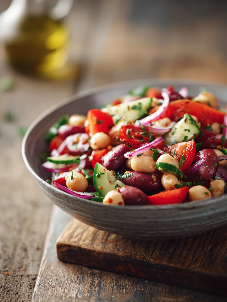 In summary, the Vibrant Mediterranean Bean Salad is a delightful dish that showcases the health benefits of fresh, seasonal ingredients combined with the robust flavors of Mediterranean cuisine. Its ease of preparation and versatility make it a go-to recipe for gatherings, meal prep, or a light lunch. Don’t hesitate to experiment with different ingredients and make it your own. Celebrate the joy of cooking by embracing the colors and flavors of the Mediterranean, and watch as this salad becomes a beloved addition to your culinary repertoire.