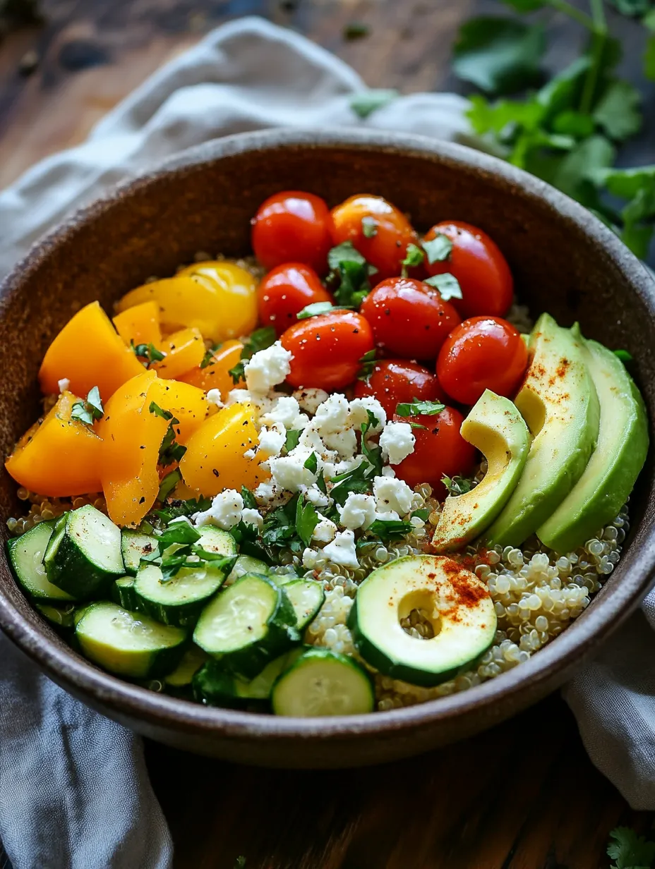 Store any leftover components separately in airtight containers. The quinoa and vegetables can be refrigerated for up to four days, while avocado should be consumed within a day or two to prevent browning. To keep the avocado fresh, consider storing it with a slice of onion or lightly coating it with lemon juice before sealing.