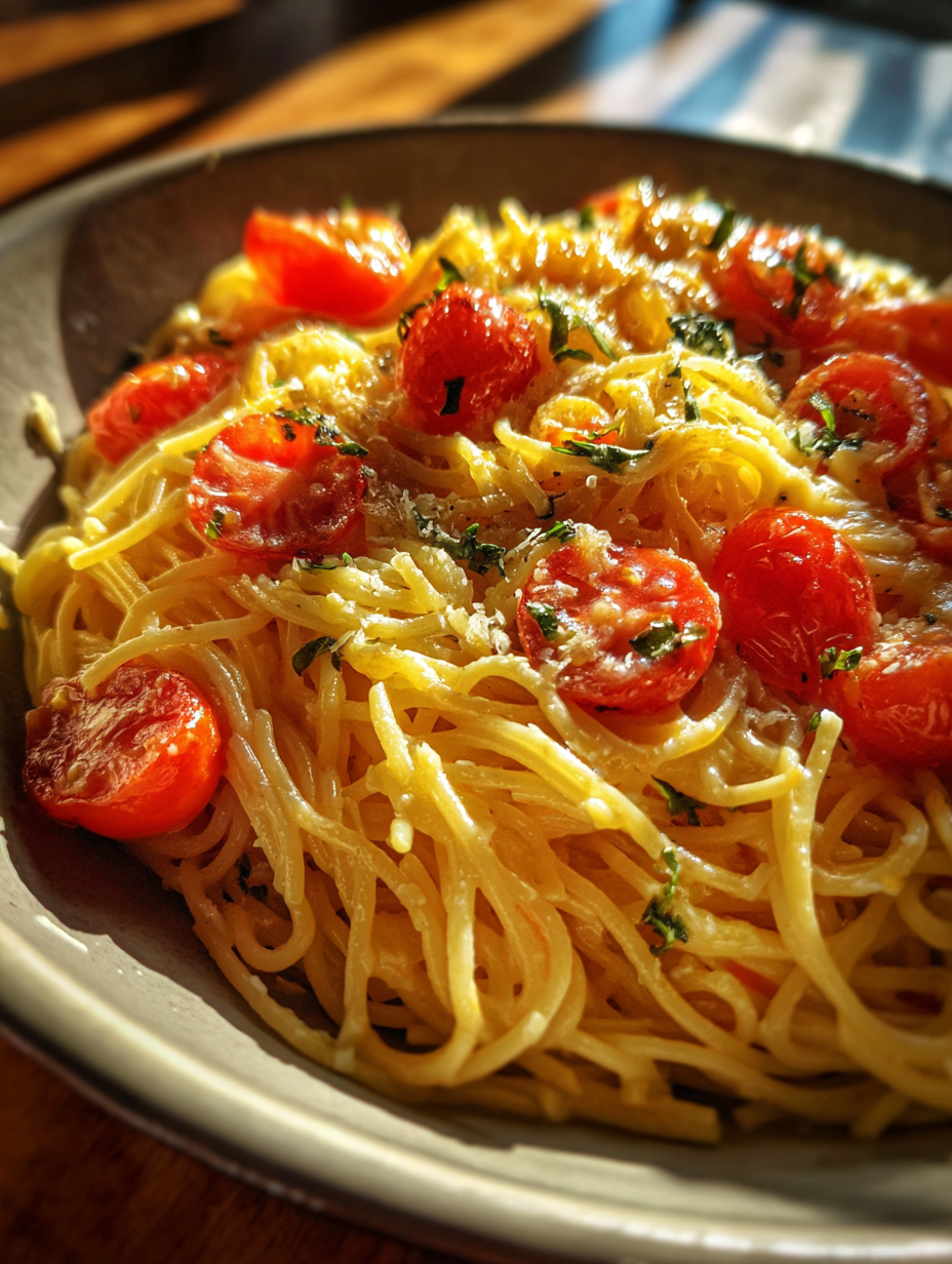 The first time I made Vine-Ripened Tomato and Basil Angel Hair, it was a sun-soaked afternoon, the kind where the air is infused with the sweet scent of blooming flowers and ripe fruits. I was in my grandmother’s kitchen, the heart of our family home, and she had just returned from the farmer’s market, her arms laden with a bounty of vibrant tomatoes and fragrant basil. I can still recall the vivid colors: the deep red of the tomatoes, the bright green of the basil, and the shimmering golden hue of the olive oil glistening in the sunlight.